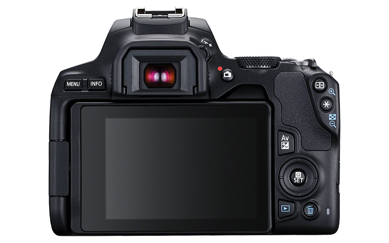 - Odchylany ekran dotykowy ułatwia fotografowanie pod nietypowym kątem, a technologia Dual Pixel CMOS AF szybko i precyzyjnie ustawia ostrość podczas fotografowania w trybie Live View